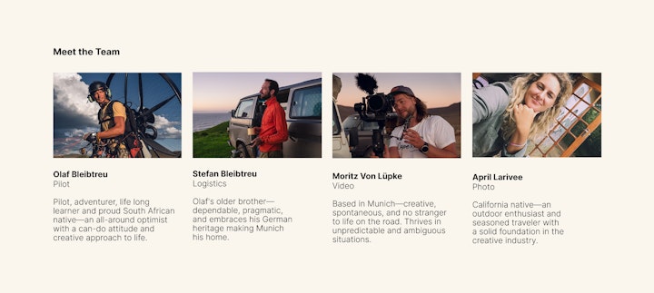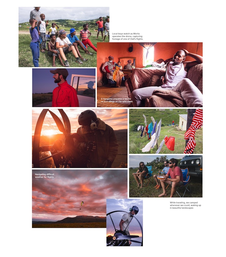 He assembled a team that included his brother, a former German military helicopter specialist; Moritz, his longtime friend and cameraman; and me, contributing photography and design support.